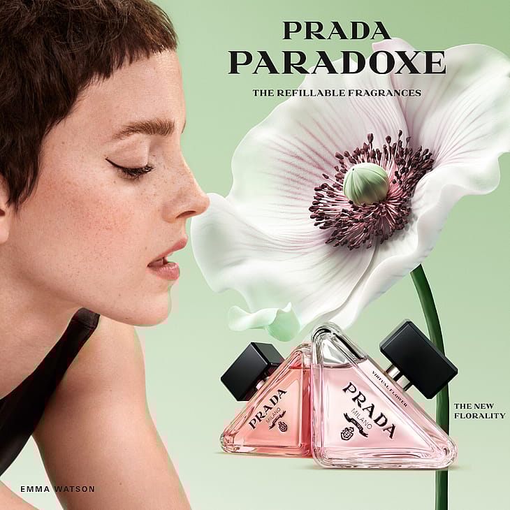 Prada Paradoxe Virtual Flower Eau de Parfum, den nye feminine duft fra Prada. Denne nye signaturduft gentænker et af de mest berømte symboler på femininitet og kodekser for parfume: blomster. En duft, der udvider grænserne for den sanselige opfattelse og udfordrer forståelsen af virkeligheden med sin friske og blomsteragtige signatur forstærket af kunstig intelligens.
