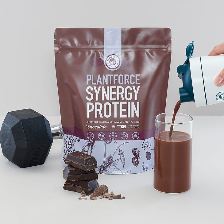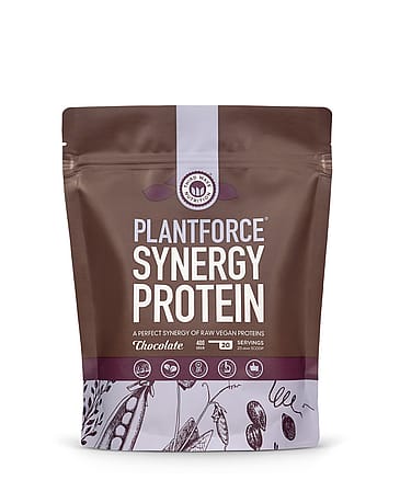 Plantforce Synergy Protein er et lækkert plantebaseret proteinpulver lavet af græskarprotein, ærteprotein og brune risproteiner. Kan anvendes af alle. Perfekt til dig som søger et vegansk proteinpulver der er velsmagende og har et højt proteinindhold.