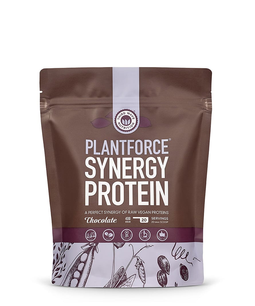 Plantforce Synergy Protein giver dig 100 % vegansk proteinpulver med kombinerede proteinkilder fra ærter, brune ris og græskar.
