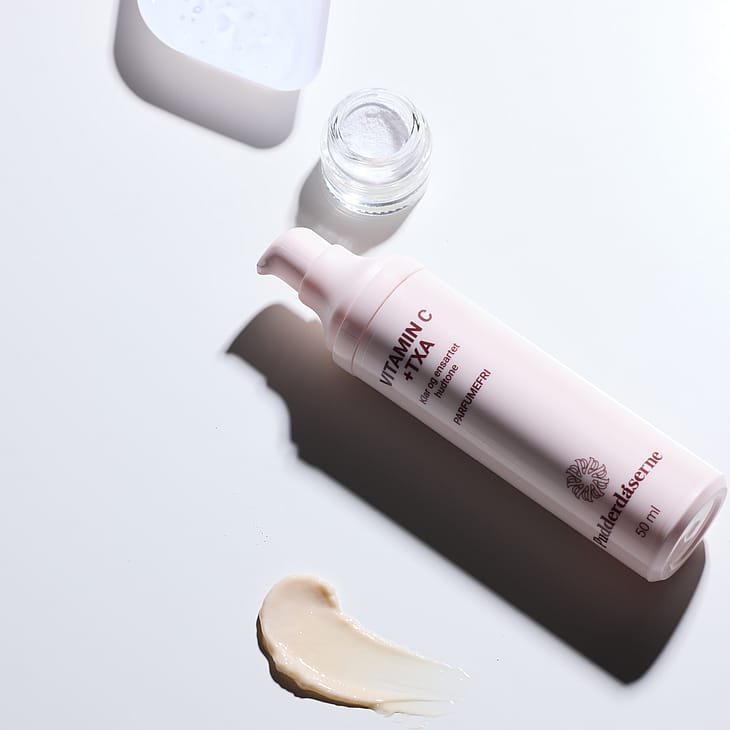 I VITAMIN C + TXA er der kombineret en særlig stabil form for C-vitamin med blandt andet tranexamsyre og phenylethylresorcinol, der tilsammen forbedrer hudtonen og bidrager til en naturlig, jævn glød.