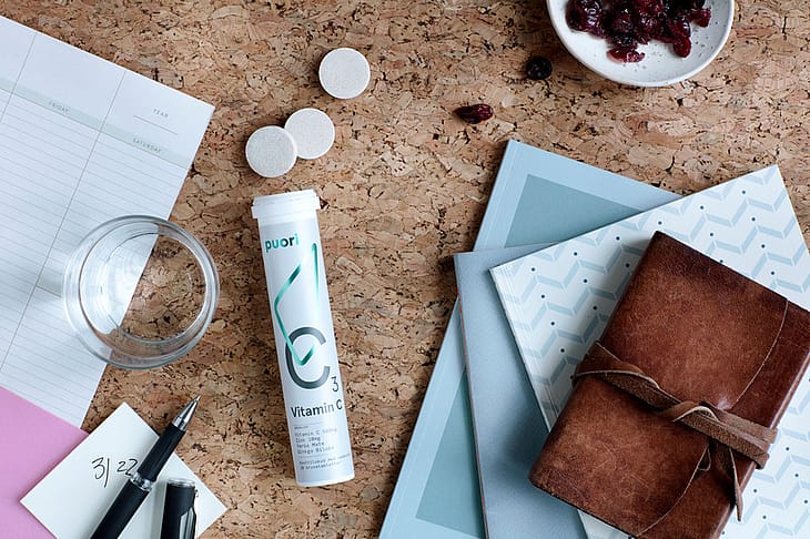Kosttilskud. I Puori C3-brusetabletterne fandt vi en måde at levere et naturligt og forfriskende produkt fra planteekstrakter, sammen med naturlige kilder af C-vitamin og mineralet zink. Et tre-i-et-produkt, med fokus på energi og immunsystem.