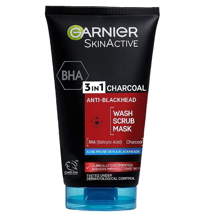 Garnier PureActive BHA Charcoal Anti-Blackhead 3in1 passer til dig , som har fedtet hud med tendens til bumser og hudorme. 3-i-1 formlen kan anvendes på flere måder: som ansigtsvask, scrub og ansigtsmaske for synligt at reducere hudorme. Huden renses, snavs og urenheder reduceres, tilstoppede porer reduceres og blank hud matteres.