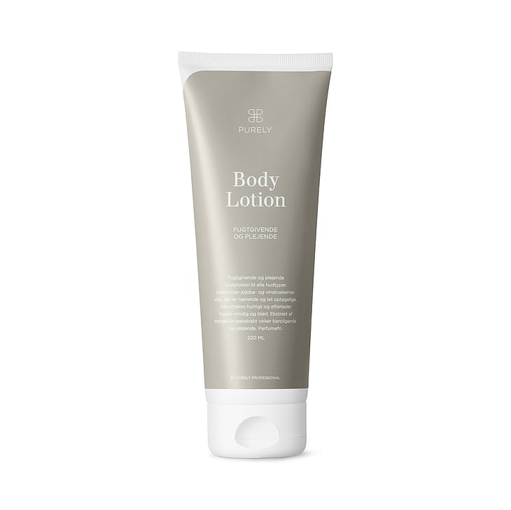 Purely Professional Body lotion 1 er en plejende og uparfumeret kropscreme med Jojoba- og vindruekerneolie, urea og ekstrakt af morgenfrue, der blødgører og beroliger huden og genopretter dens naturlige fugtbalance.