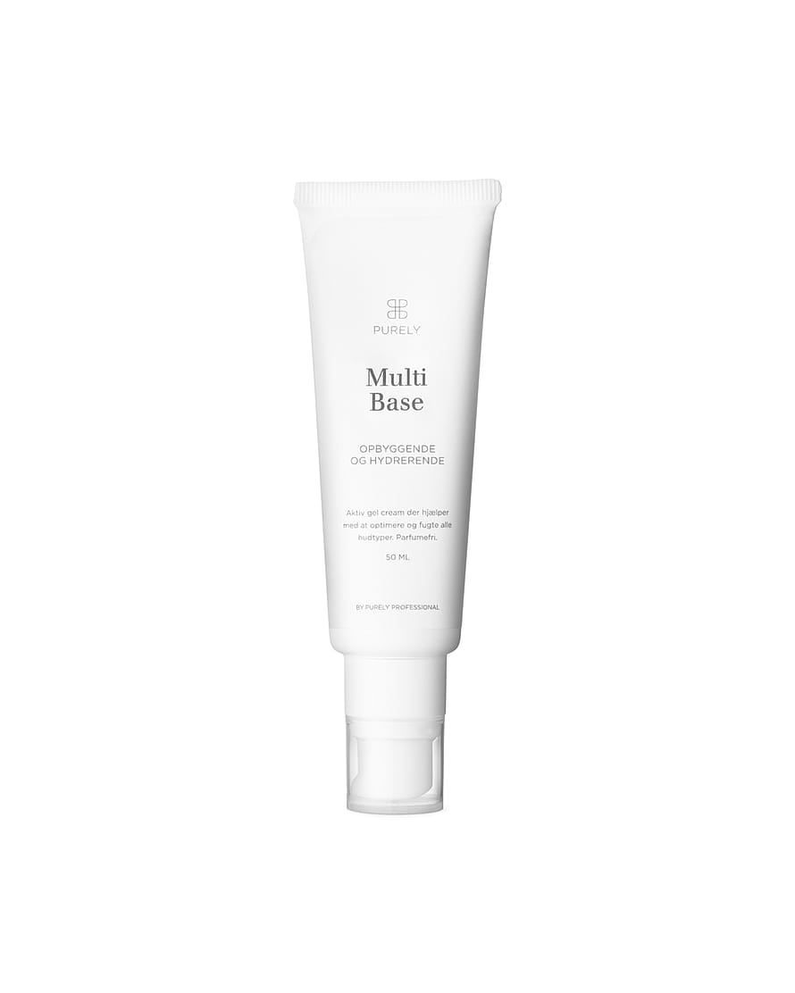 Purely Professionals Multi Base har en let gel form og virker genopbyggende, fugtende og optimerer huden. Den er sammensat for at imødekomme problemstillinger for både den unge og mere modne hudtyper.