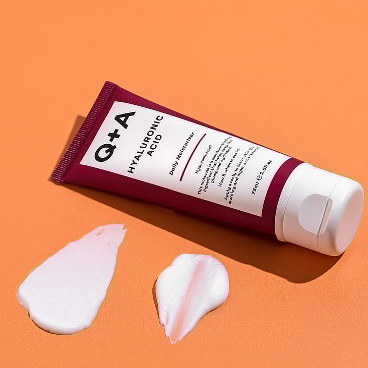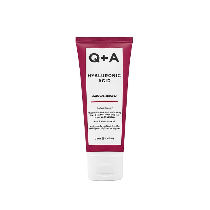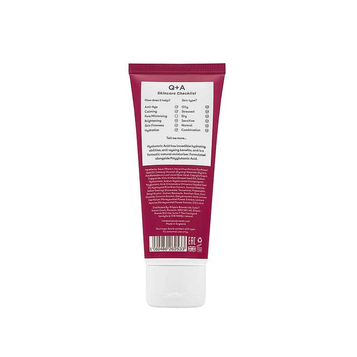 Hyaluronic Acid Daily Moisturizer fra Q+A er en fugtgivende ansigtscreme med hyaluronsyre og polyglutaminsyre.