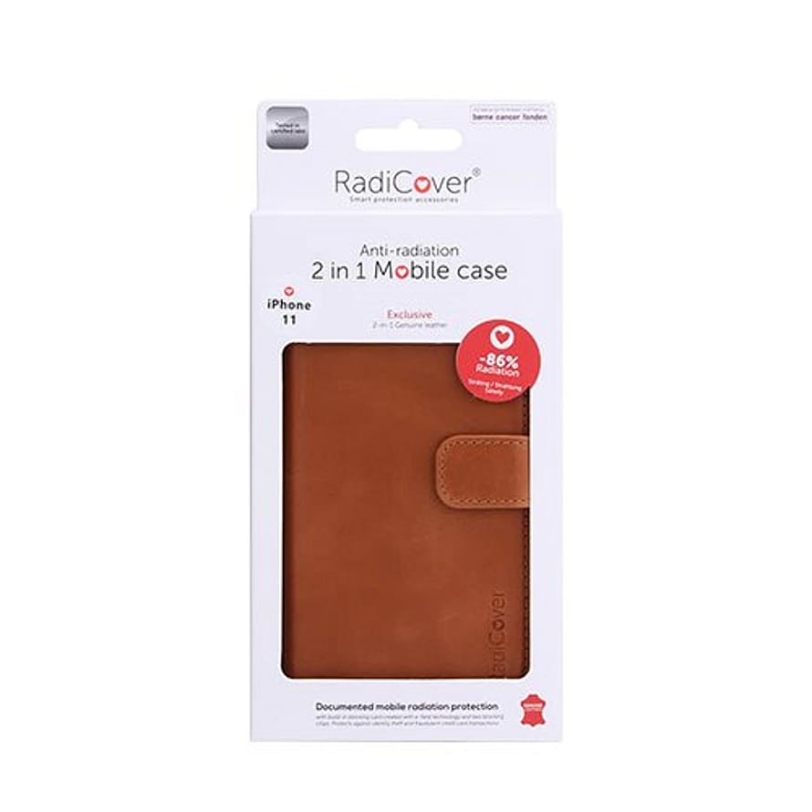 Strålingsbeskyttende Wallet, Premium Læder til iPhone 11 2in1, Brun