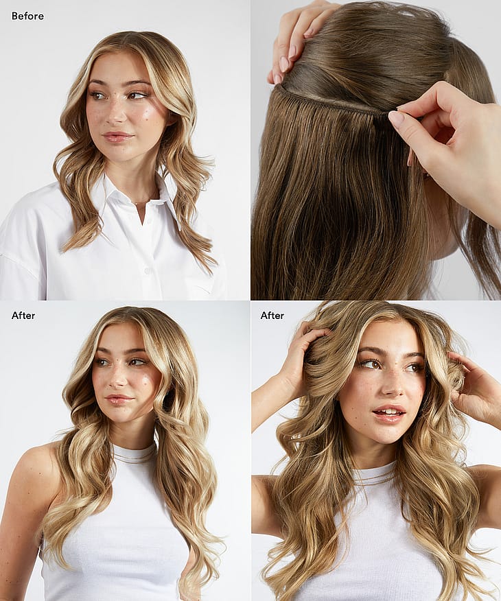 • En pakke med 7 dele og en pakke med 3 dele for en ekstra fyldig hårforlængelse/fortykkelse