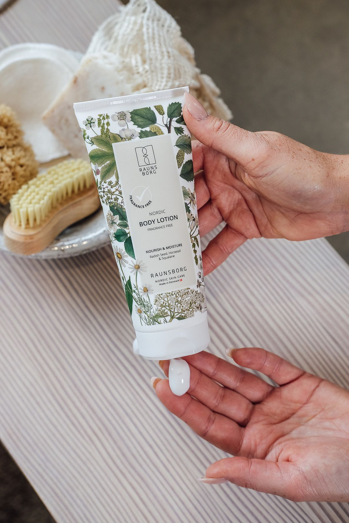 Brug Raunsborg Nordic Body Lotion efter hvert bad, så din hud får både fugt og næring.