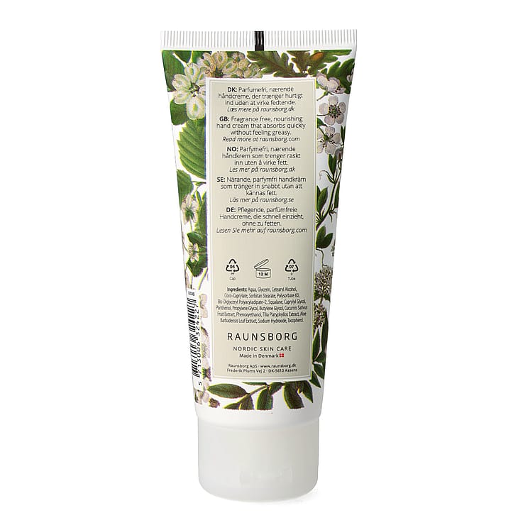 Hand Cream er en nærende og fugtgivende håndcreme, som trænger hurtigt ind i huden uden at virke fedtende. Cremen har en mild og frisk duft af birk.