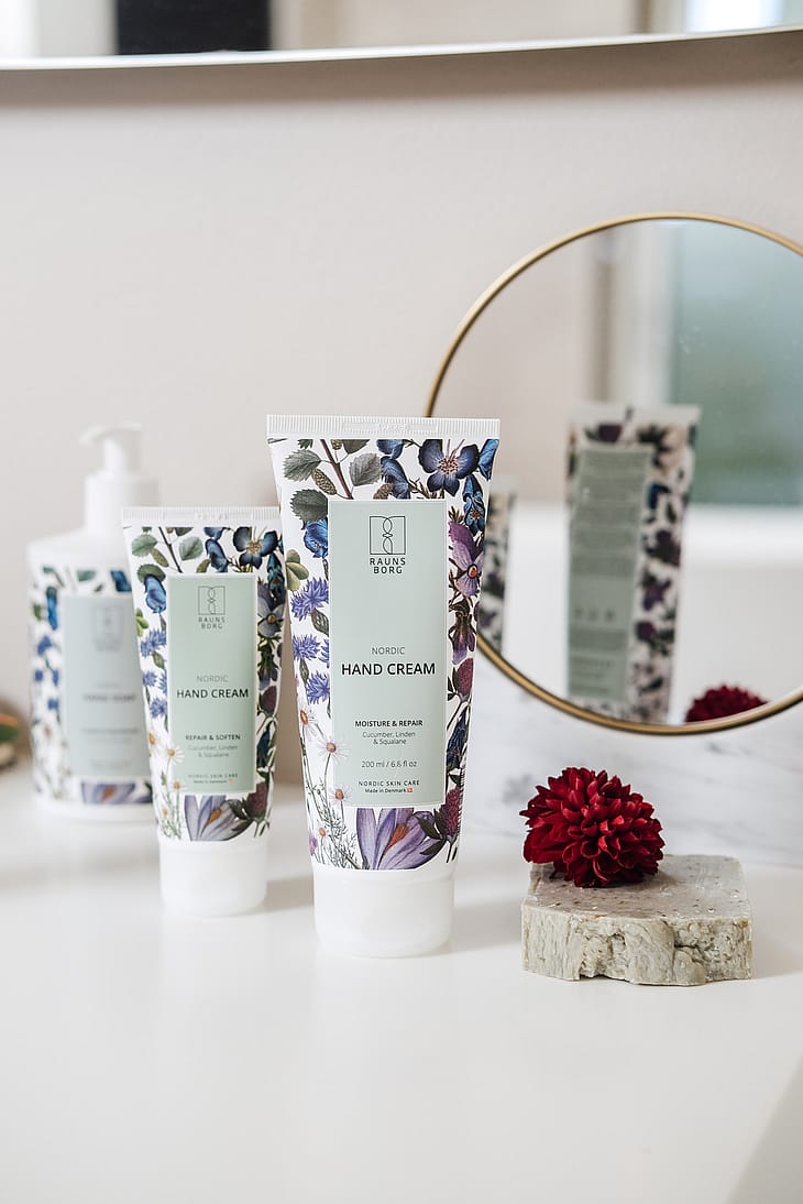 Hand Cream er en nærende og fugtgivende håndcreme, som trænger hurtigt ind i huden uden at virke fedtende. Cremen har en mild og frisk duft af birk.