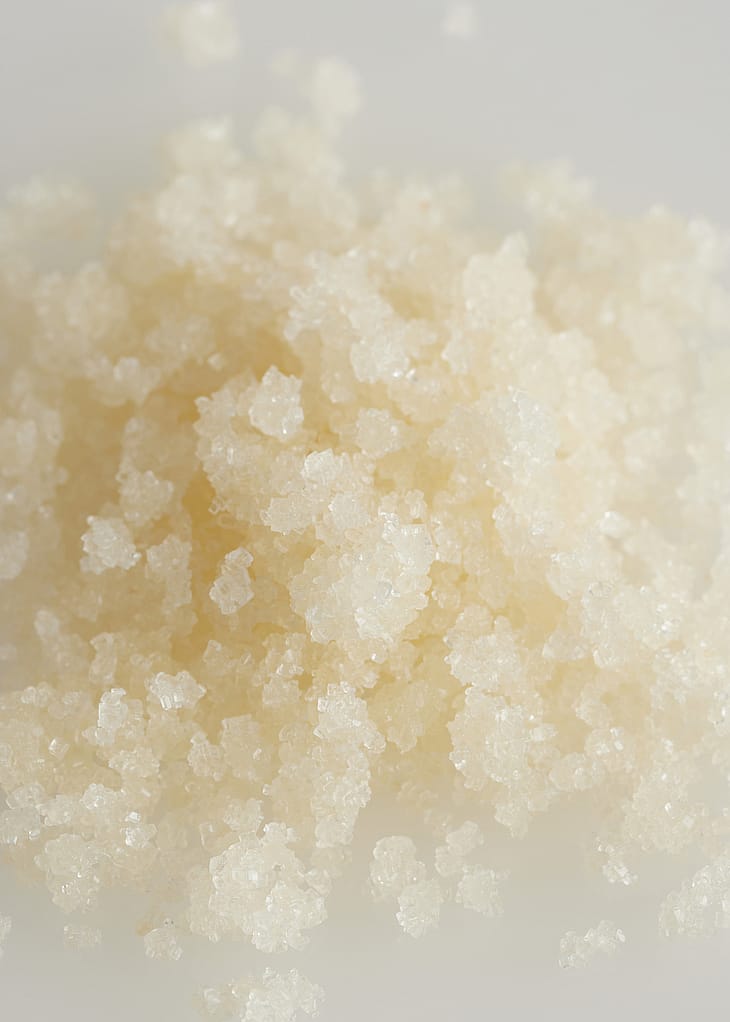 Når den opløses på den våde hud, dannes der en mild AHA frugtsyre, der nænsomt eksfolierer og opfrisker huden.