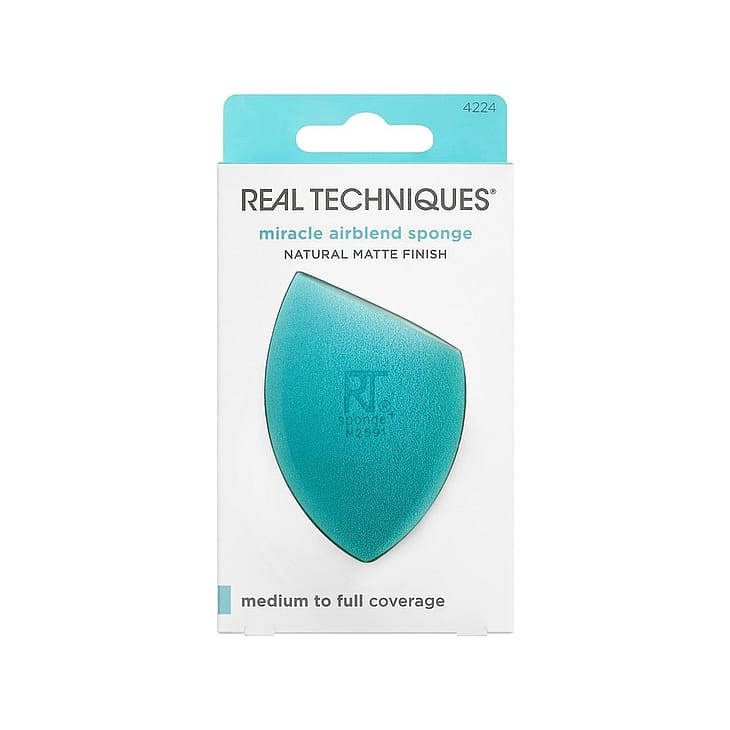 Miracle Airblend Sponge med memoryskumteknologi, der krammer hudens overflade for en fejlfri applikation, hvilket resulterer i makeup i medium til fuld dækning med en naturlig mat finish.