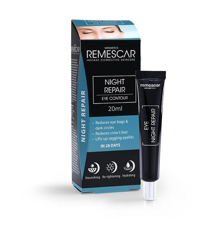 Remescar Night Repair er en øjencreme, der tilbyder næring, fugt og en opstrammet hud i løbet af natten. Den løfter hængende øjenlåg og reducerer poser og mørke rander under øjnene.