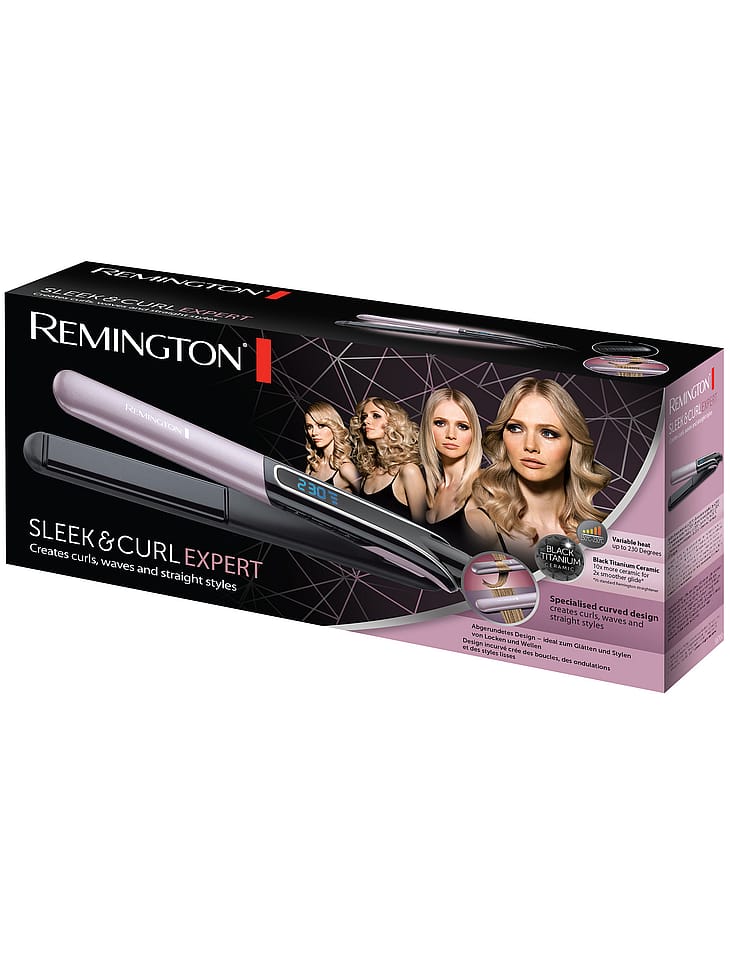 Produktegenskaber: • Specialiseret kurvet design – ideelt til krølning og glatning • Sort keramisk titanium – 10 gange mere keramik* for 2 gange lettere strøg* • Digitalt display 150-230°C • Temperaturlåsningsfunktion • Temperaturboostfunktion • Hurtig opvarmning, klar til brug i løbet af 15 sekunder • 110 mm tynde plader med længere længde • Pladelås for nem opbevaring • Global spænding • Automatisk slukning efter 60 minutter • 3 m drejeledning • Beskyttende opbevaringshylster • 5 + 1 års garanti (registrer produktet på remington.dk inden for 28 dage for et ekstra års garanti)
