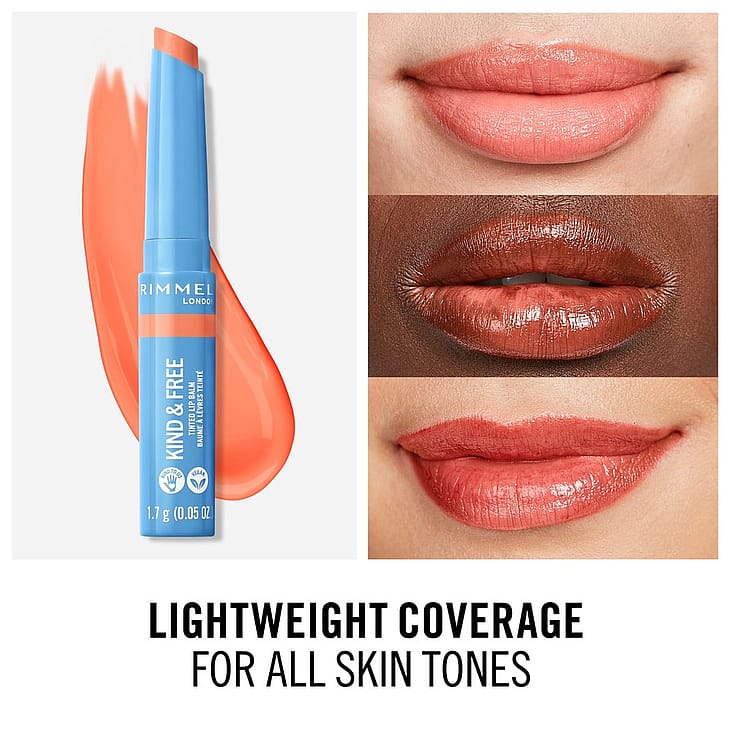 Rimmel Kind & Free Lip Butter Quench Clean Lip Balm er en fugtgivende og let farvet læbepomade med en cremet konsistens, der gør, at den glider let hen over læberne.