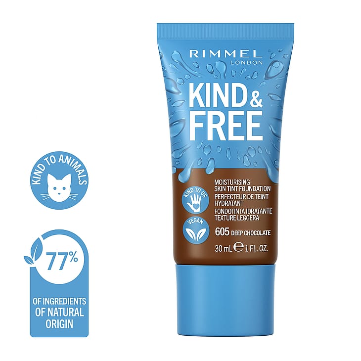 Rimmel KIND&FREE produkter er alle 100% veganske og alt emballage er lavet af minimum 30% genanvendte materialer. Ingen kompromiser!