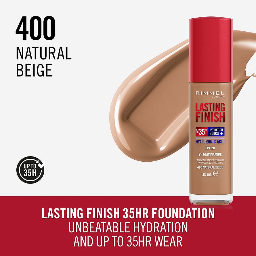 Få uovertruffen fugtighed og op til 35 timers holdbarhed med Rimmel London Lasting Finish 35 Hour Foundation, Rimmels mest fugtgivende long-wear foundation.