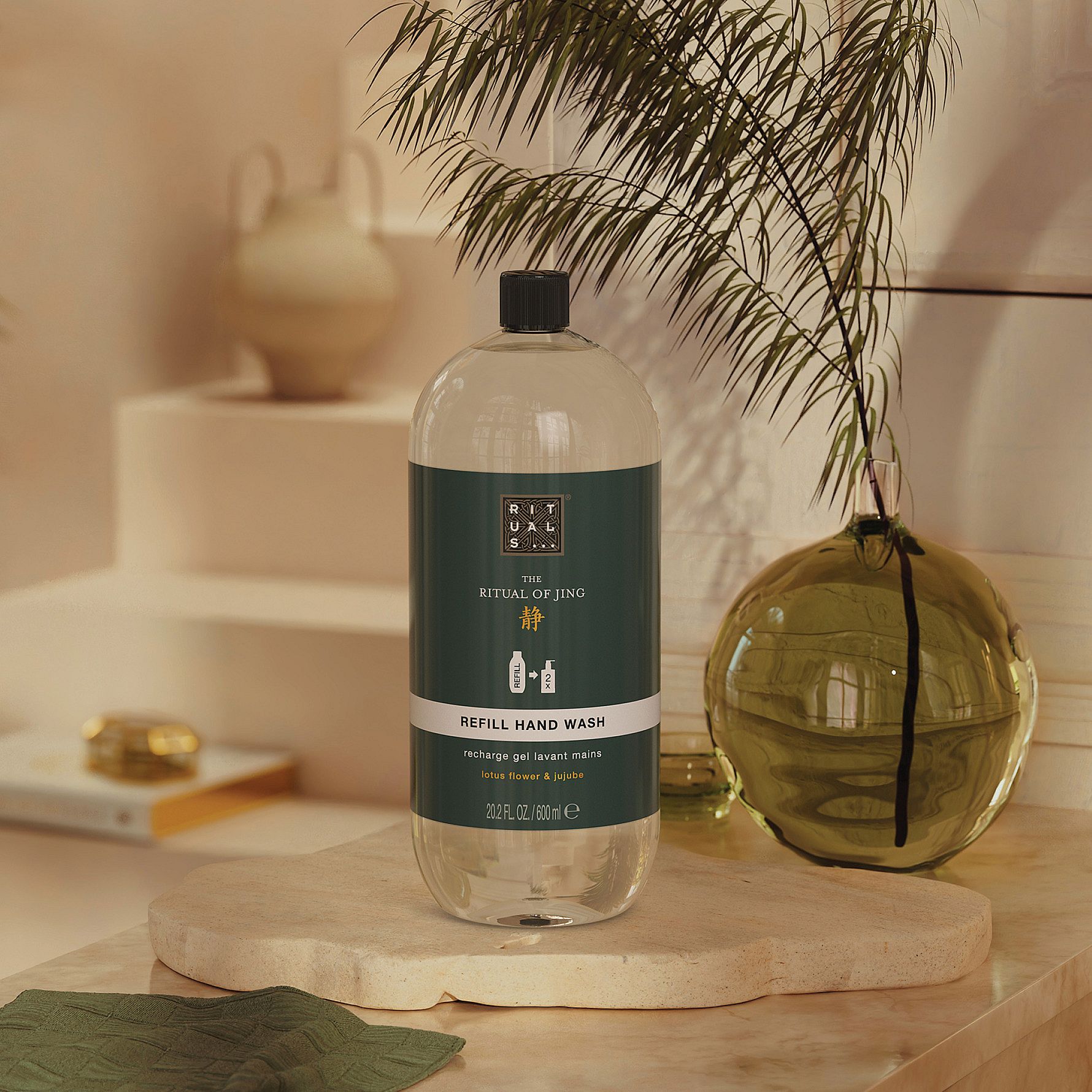 Er det tid til at genopfylde din håndsæbe? Med denne 600 ml refill kan du genopfylde din luksuriøse Rituals håndsæbedispenser to gange! Denne vidunderlige håndsæbe fra The Ritual of Jing, der er designet til at forvandle en simpel pligt til et fredeligt øjeblik, kombinerer den varme, blomsteragtige duft af lotusblomst og jujube og giver en beroligende og dejlig oplevelse. Vores håndsæber er pH-neutrale, så de er skånsomme mod dine hænder, mens de stadig renser grundigt.