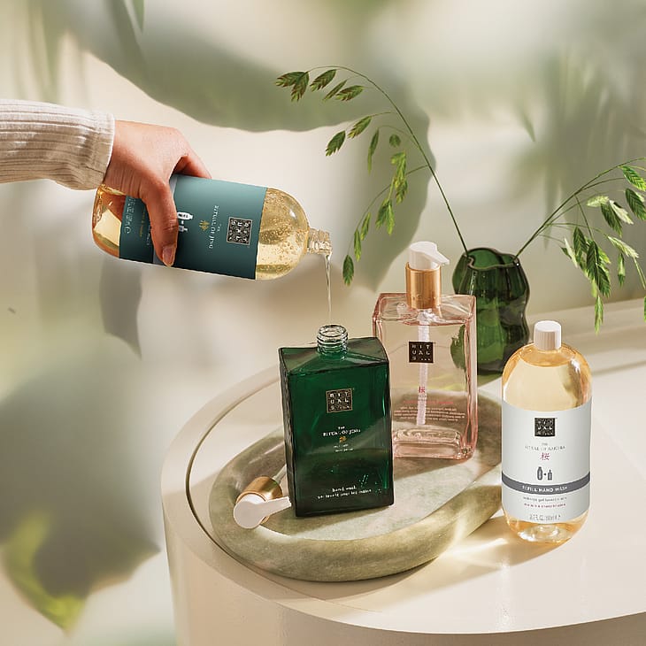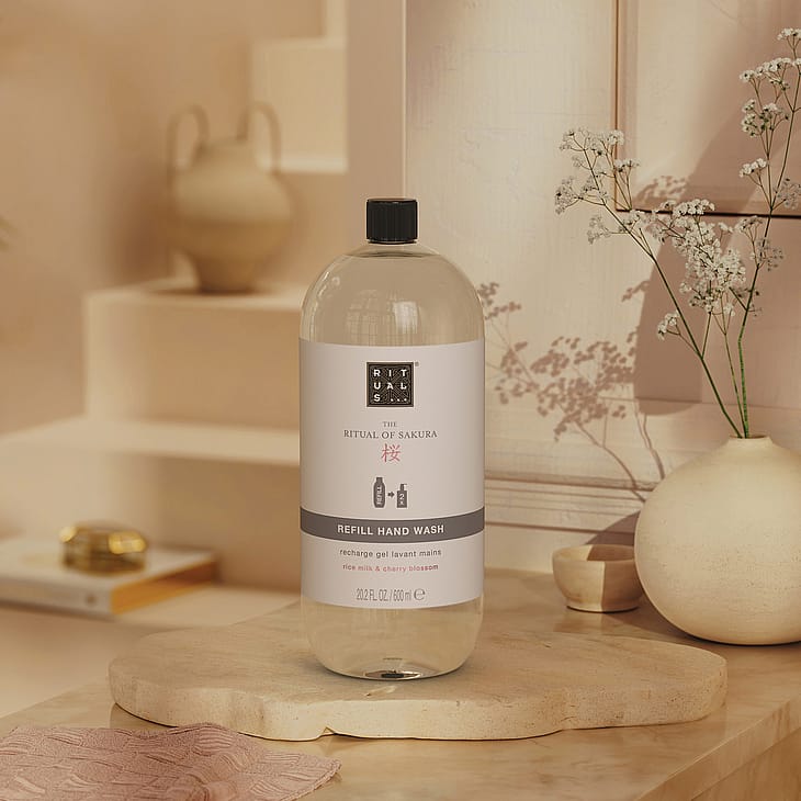 Er det tid til at genopfylde din håndsæbe? Med denne 600 ml refill kan du genopfylde din luksuriøse Rituals håndsæbedispenser to gange! Denne vidunderlige håndsæbe fra The Ritual of Sakura er designet til at forvandle en simpel pligt til et fredeligt øjeblik og er tilsat rismælk, en beroligende ingrediens, der nærer huden, med den søde og delikate duft af kirsebærblomster. Vores håndsæber er pH-neutrale, så de er skånsomme mod dine hænder, mens de stadig renser grundigt.