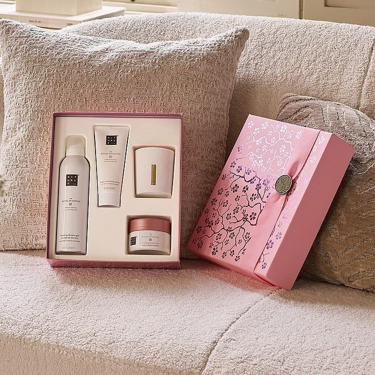 The Ritual of Sakura Body Cream: Aqua/Water, Cetearyl Alcohol, Glycerin, Caprylic/Capric Triglyceride, Propylheptyl Caprylate, Undecane, Helianthus Annuus (Sunflower) Seed Oil, Parfum/Fragrance, Prunus Avium (Sweet Cherry) Fruit Extract, Oryza Sativa (Rice) Extract, Centella Asiatica Leaf Extract, Allantoin, Ubiquinone, Tocopherol, Tocopheryl Acetate, Propylene Glycol, Caprylyl Glycol, Carbomer, Sodium Polyacrylate, Ceteareth-20, Glyceryl Stearate, Ceteareth-12, Cetyl Palmitate, Tridecane, Isohexadecane, Butylene Glycol, Sodium Citrate, Benzyl Salicylate, Cinnamyl Alcohol, Citral, Citronellol, Coumarin, Geraniol, Hexyl Cinnamal, Isoeugenol, Linalool, Alpha-Isomethyl Ionone, Limonene, Phenoxyethanol, Potassium Sorbate, Sodium Metabisulfite, Sorbic Acid, Citric Acid, Sodium Hydroxide.The Ritual of Sakura Scented Candle: See WARNINGThe Ritual of Sakura Body Scrub: Sucrose, Ethylhexyl Stearate, Isopropyl Myristate, Carthamus Tinctorius (Safflower) Seed Oil, Parfum/Fragrance, Prunus Amygdalus Dulcis (Sweet Almond) Oil, Prunus Cerasus (Bitter Cherry) Shell Powder, Prunus Avium (Sweet Cherry) Flower Extract, Camellia Japonica Seed Oil, Oryza Sativa (Rice) Bran Oil, Simmondsia Chinensis (Jojoba) Seed Oil, Helianthus Annuus (Sunflower) Seed Oil, Tocopherol, Benzyl Salicylate, Cinnamyl Alcohol, Citronellol, Coumarin, Geraniol, Hexyl Cinnamal, Linalool, Alpha-Isomethyl Ionone, Limonene.The Ritual of Sakura Foaming Shower Gel: Aqua/Water, Sodium Coco-Sulfate, Decyl Glucoside, Isopentane, Coco-Glucoside, Glycerin, Parfum/Fragrance, PEG-120 Methyl Glucose Dioleate, Isobutane, Isopropyl Palmitate, Oryza Sativa (Rice) Extract, Prunus Serrulata (Cherry) Flower Extract, Citric Acid, Sodium Benzoate, Hexyl Cinnamal, Guar Hydroxypropyltrimonium Chloride, Benzyl Salycilate, Linalool, Coumarin, Citronellol, Geraniol, Alpha-Isomethyl Ionone, Cinnamyl Alcohol, Tocopherol, Potassium Sorbate, Sodium Citrate, Sorbic Acid.