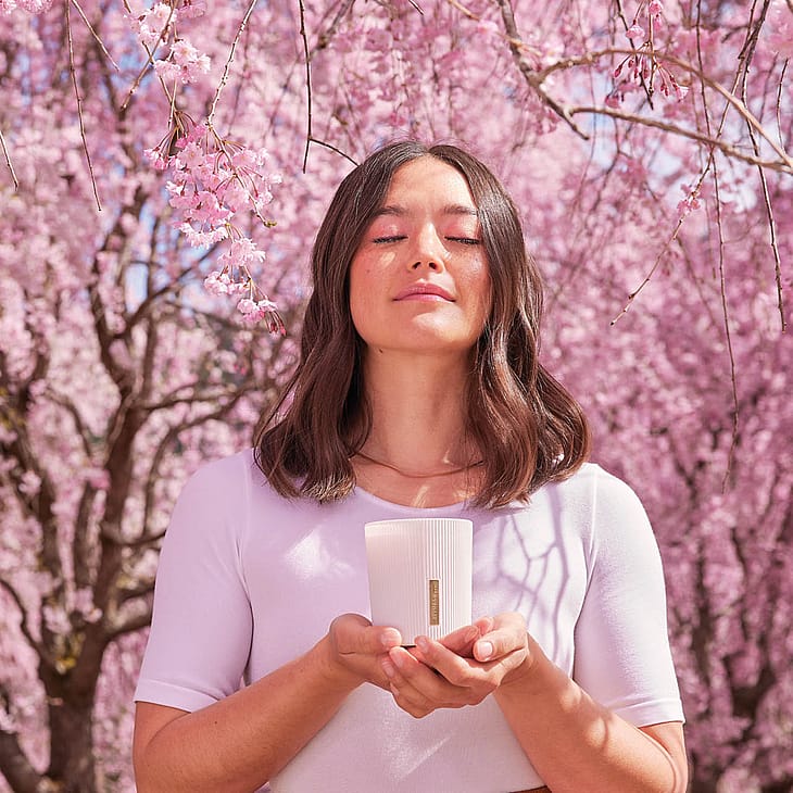 Lys op på vejen mod en ny begyndelse med dette luksuriøse duftlys. Baseret på den fornyende duft af kirsebærblomst og rismælk.