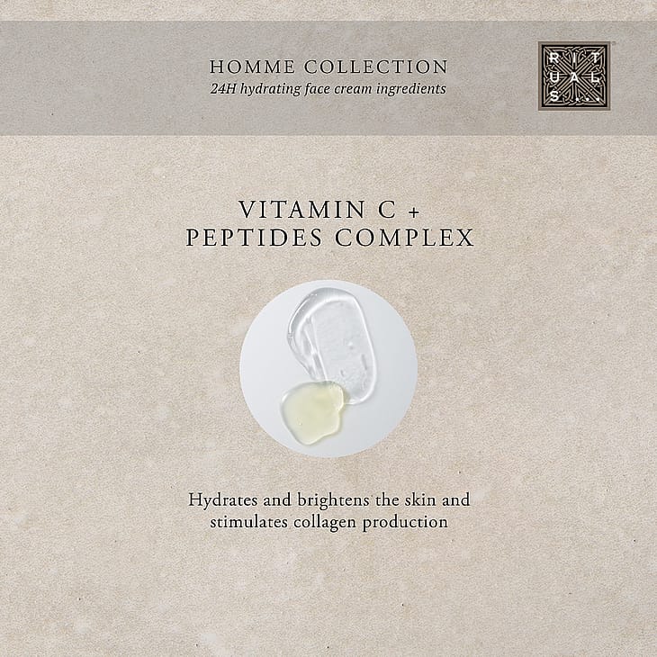 Homme 24-h Hydrating Face Cream, den ultimative fugtighedscreme til at imødekomme dine specifikke hudbehov. Denne multi-effekt creme er sammensat med en særlig blanding af C-vitamin + peptider for at give glattere hud, samt går dybt ind i din hud for at fugte, forfriske og genoplive den.
