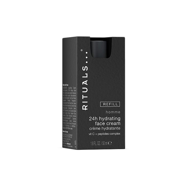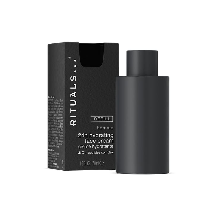 Refill til Homme 24-h Hydrating Face Cream. Denne multi-effekt creme er sammensat med en særlig blanding af C-vitamin + peptider for at give glattere hud, samt går dybt ind i din hud for at fugte, forfriske og genoplive den.