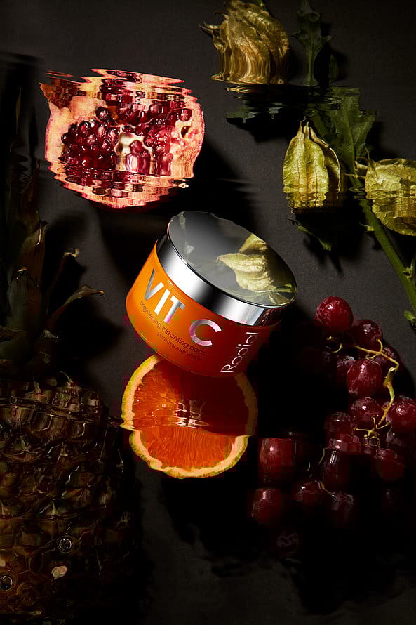 Lysner, eksfolierer og forynger huden. Vitamin C og frugtsyrer.