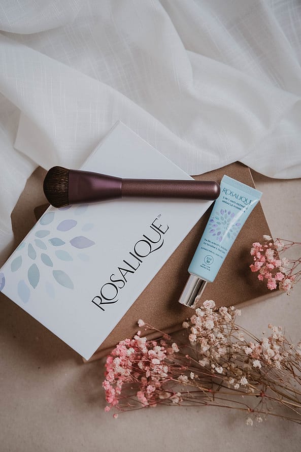 Fordel nogle prikker af Rosalique 3 i 1 dagcreme rundt i ansigtets. Blend produktet ind med Rosalique Miracle Foundation Brush, for et jævnt fejlfrit resultat.