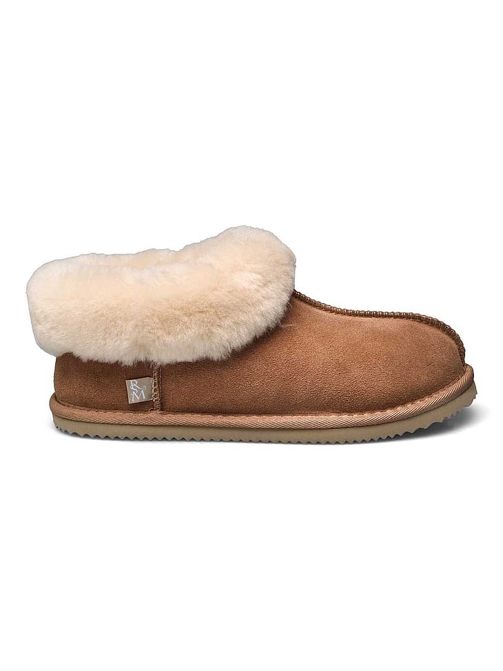 Den komfortable RHEvelyn Closed Ankle Slipper, fremstillet af 100% ruskind, tilbyder både luksus og varme.