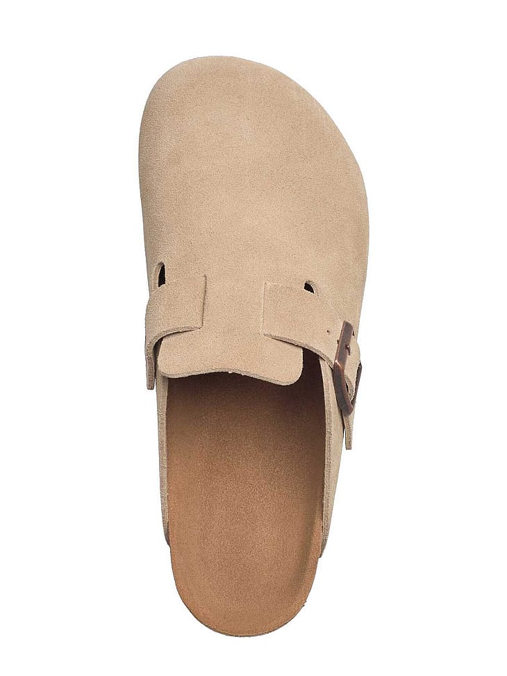 Denne stilfulde lukkede sandal, fremstillet af 100% ruskind, tilbyder både komfort og elegance.