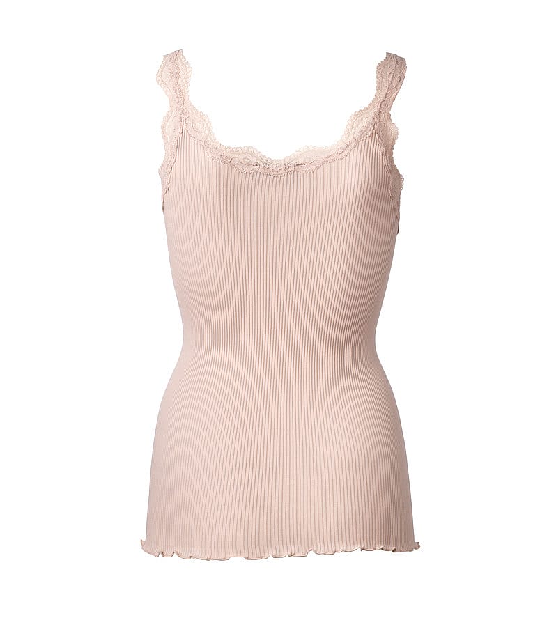 Rosemundes organic bomuld top er ekstra blød og behagelig designet med en feminin blondekant langs den runde halsudskæring.