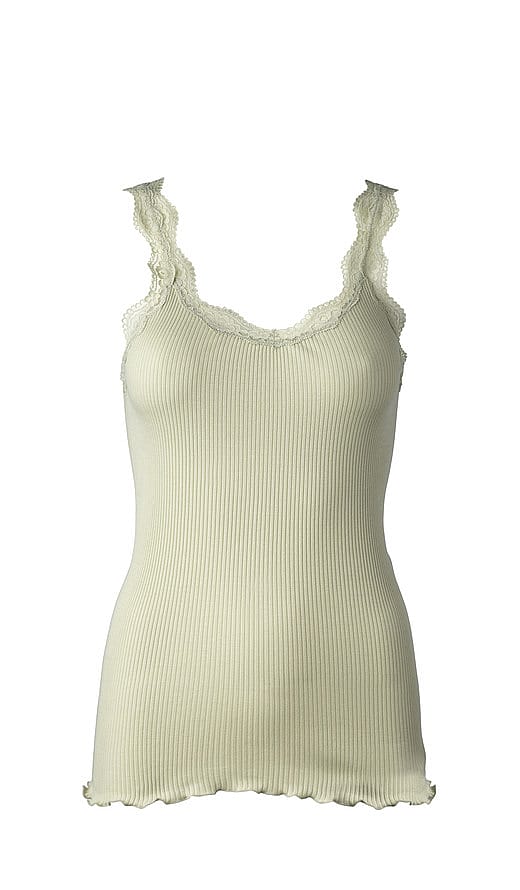 Rosemundes organic cotton top er ekstra blød og behagelig designet med en feminin blondekant langs den runde halsudskæring.