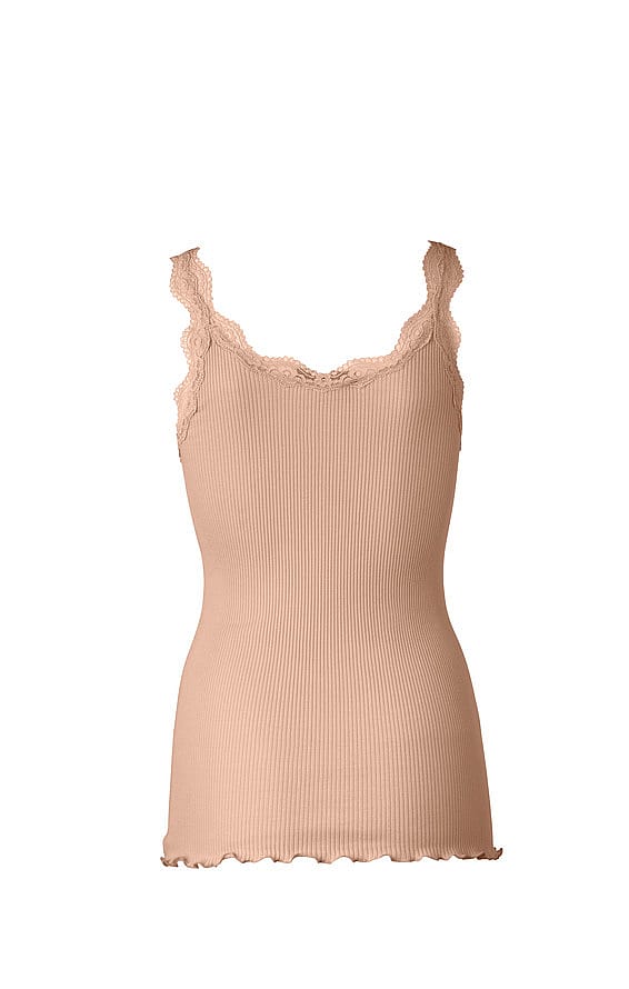 Rosemundes organic cotton top er ekstra blød og behagelig designet med en feminin blondekant langs den runde halsudskæring.