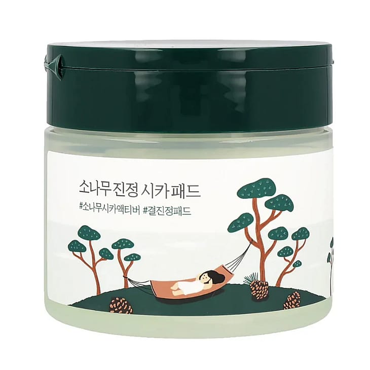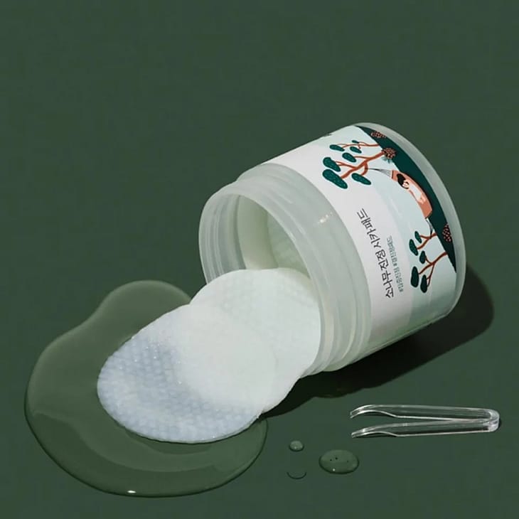 Beroligende pads med cica og fyrreekstrakt, der reducerer rødme og fugter huden.