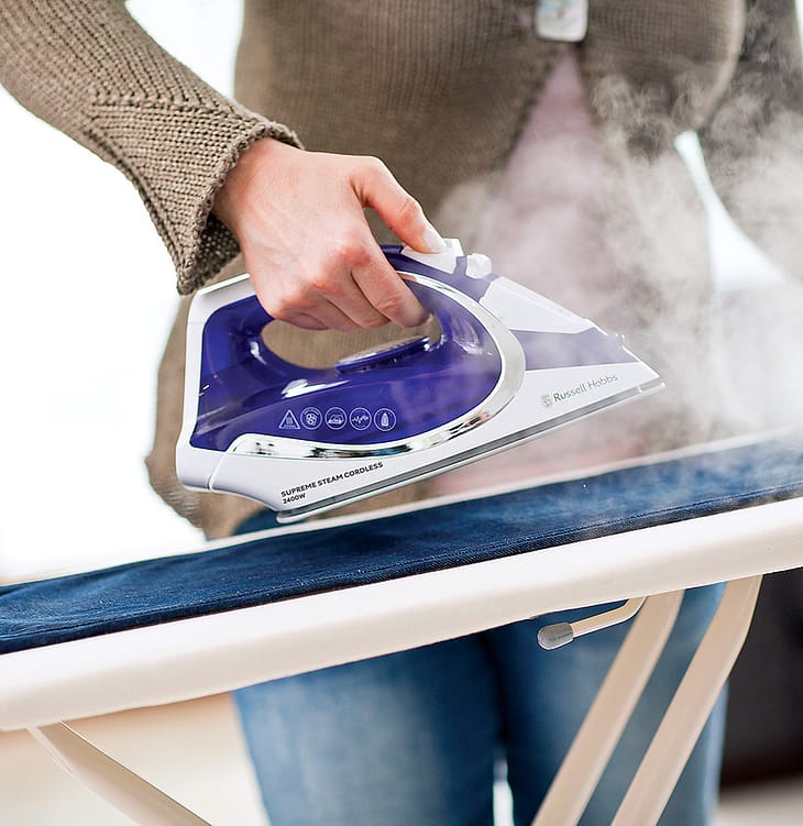 Der er ingen ledninger, der hænger ned, og strømledningen opbevares i basen, så dermed er det ledningsfrie strygejern Supreme Steam et ordentligt, problemfrit apparat, der vil blive en uundværlig del af din vasketøjsrutine.