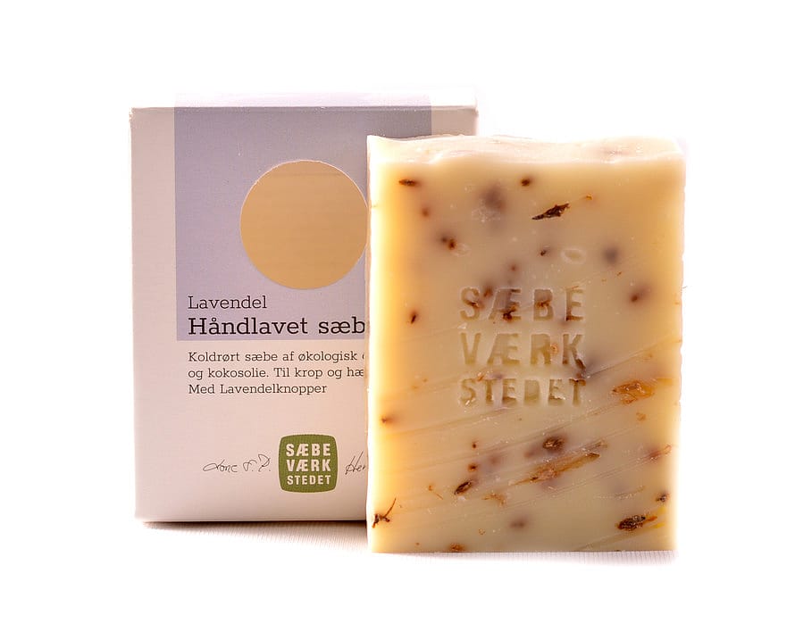 Mild blid sæbe til krop og hænder. Sæben er fremstillet af rene planteolier, med en overvægt af økologisk olivenolie. Sæben dufter af Lavendel og indeholder tørrede Lavendelknopper, der giver et fast, blidt skrub.