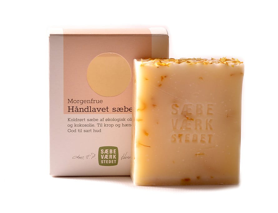 Mild, neutral sæbe til hele kroppen. Sæben er fremstillet af rene planteolier, med en overvægt af økologisk olivenolie. Sæben indeholder desuden olie og kronblade af Morgenfrue.