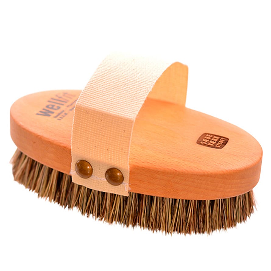 Børsten er udført i olieret bøg, med en blanding af hestehår og sisal, der gør den idéel til tørbørstning af hele kroppen.