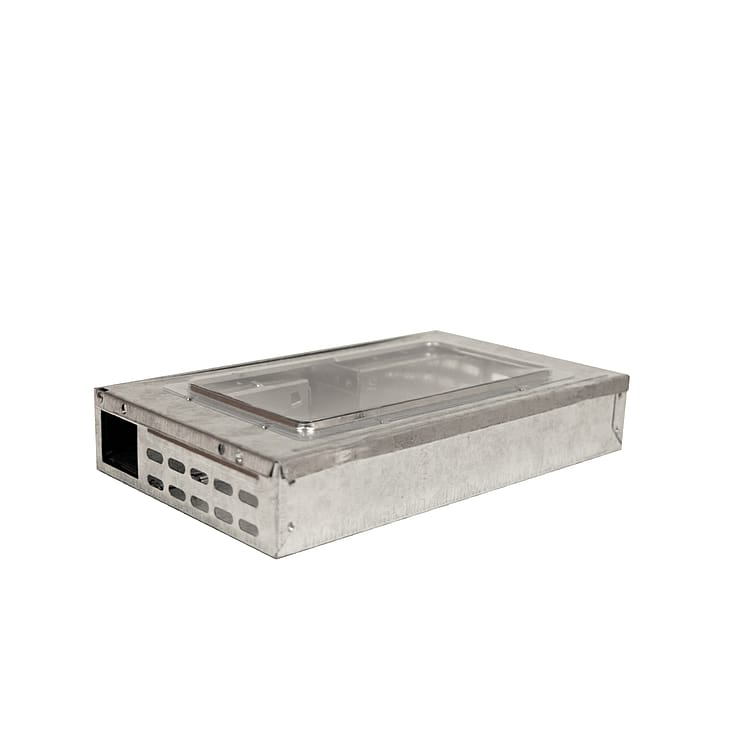 Låget åbnes nemt, for placering af lokkemad og ved udsættelse af fangede mus.