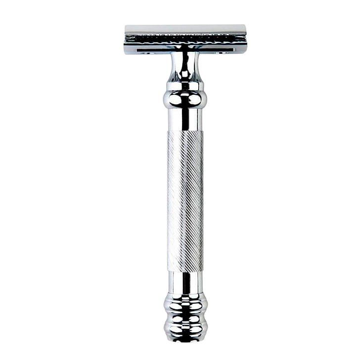 Klassisk safety razor, sammenlignelig med Merkur 38c. Tung med store linjer på håndtaget for at give et fast greb, selv under de mest glatte barberinger.