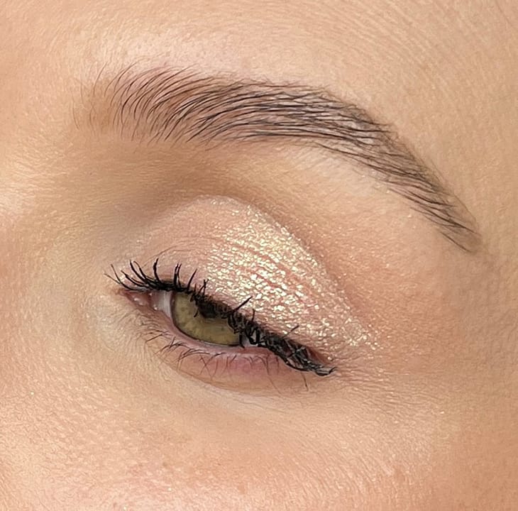 Kan også anvendes med en fugtig pensel, så du både kan intensivere farven, og bruge den som eyeliner.