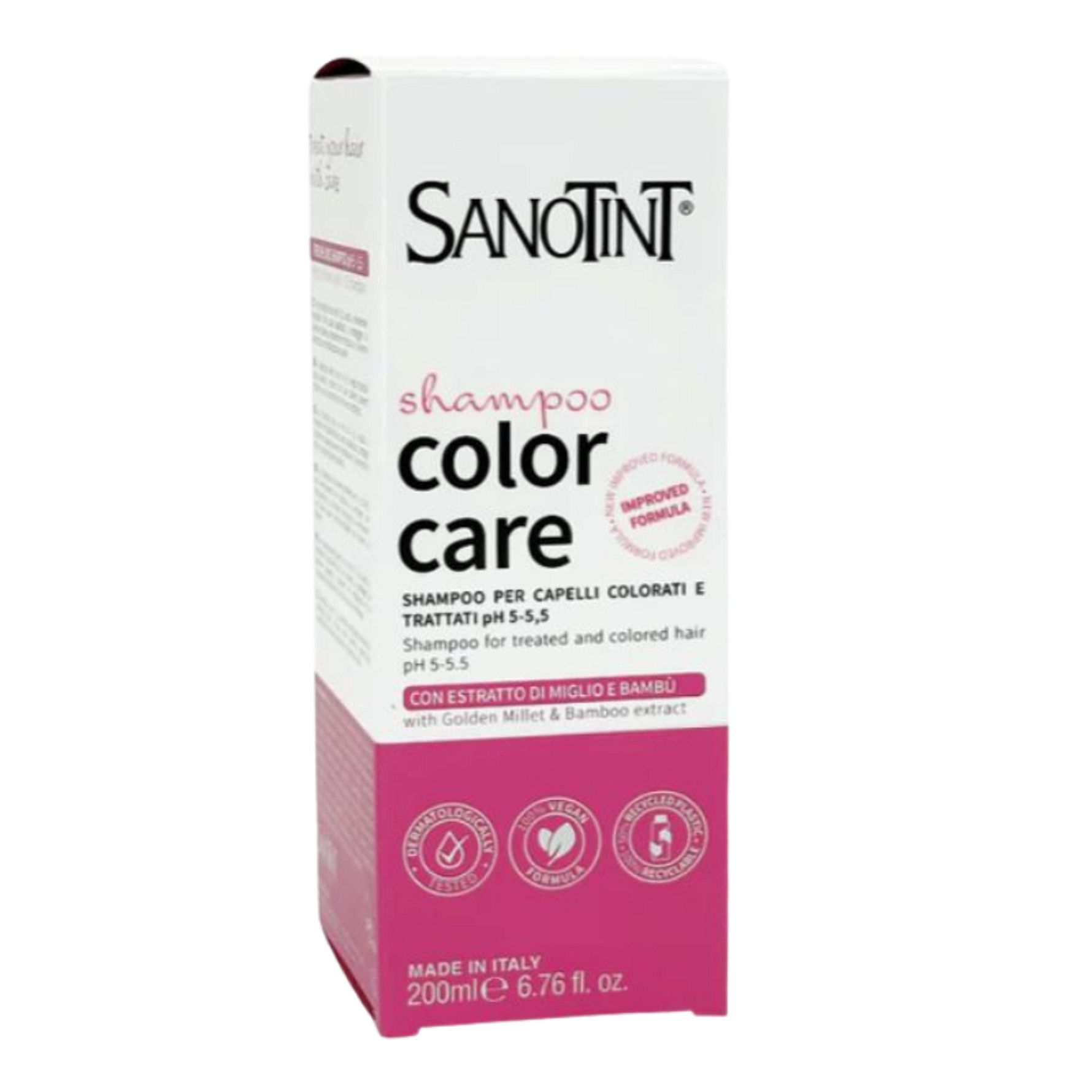 Farvet hår kræver nænsom behandling, der stadig holder farven intakt. Sanotints beskyttende Colour CareShampoo er specifikt designet til behandlet hår og er ideel til hyppige vaske. Guargummi og bambusekstrakt giver den ideelle mængde fugt. De velkendte antioxidantegenskaber fra E-vitamin bekæmper tørhed, der er typisk for behandlet hår, gendanner blødhed og glans, mens den nærende og fugtgivende virkning fra naturlig hirseekstrakt giver håret et sundere look.