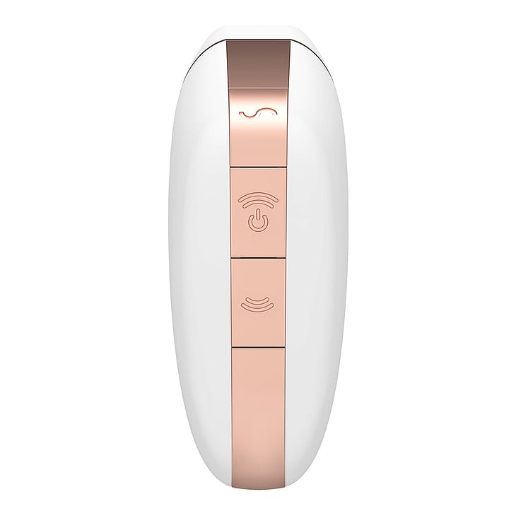 Satisfyer Love Triangle White er en stilfuld og moderne klitorisvibrator, der kombinerer gennemprøvet Air-Pulse-teknologi med dybe vibrationer og trykbølger. Kompatibel med Satisfyers App Connect, som er gratis og tilgængelig til iOS og Android. Med Satisfyers App Connect skabes utallige muligheder for at tilpasse dine egne vibrationsprogrammer, og telefonen bliver din fjernbetjening. Hvis du foretrækker at bruge vibratoren manuelt, skal du starte produktet med tænd/sluk-knappen og skifte mellem indbygget pulsations- og vibrationsmønster.