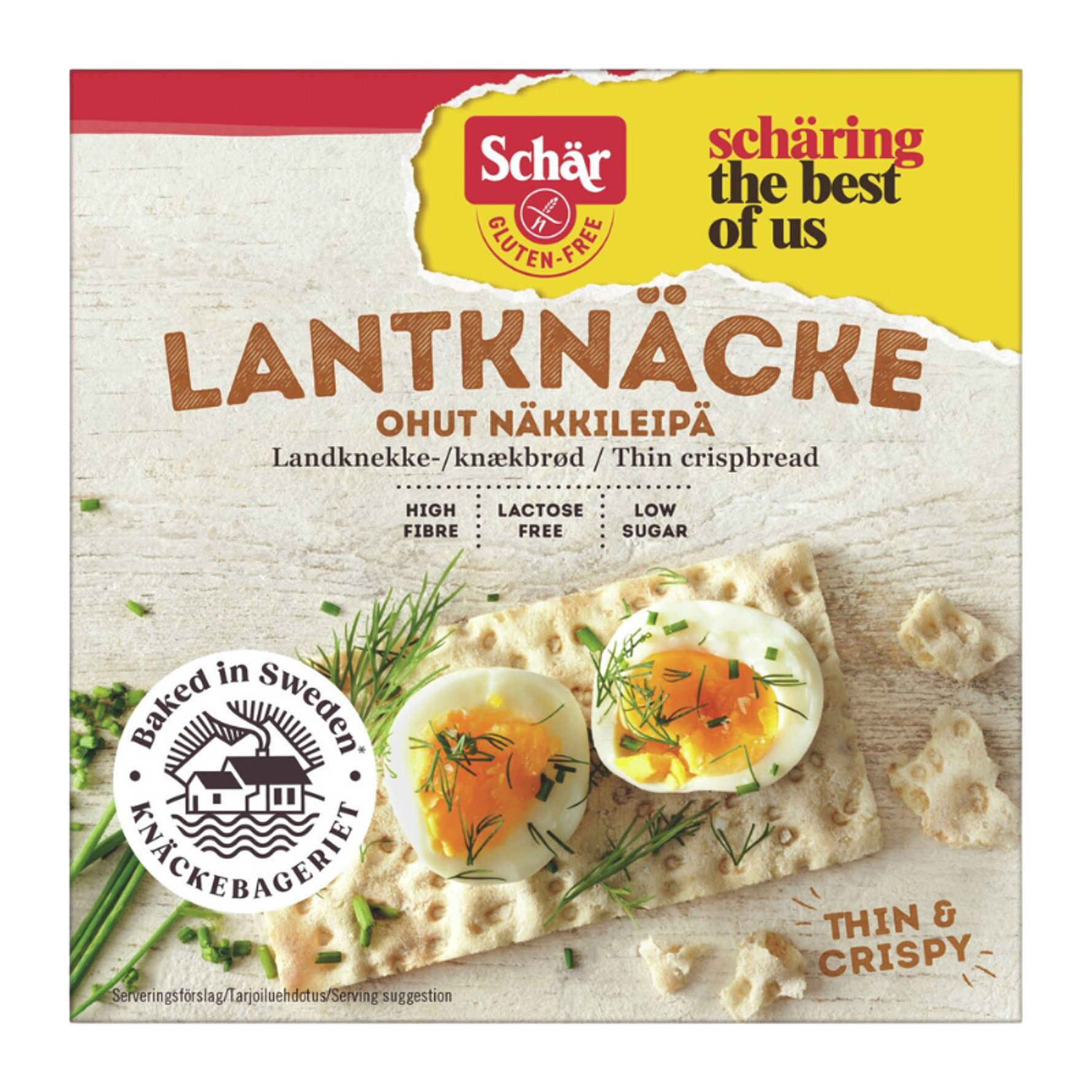 Schärs Landknækbrød er et tyndt, sprødt og glutenfrit knækbrød med højt fiberindhold.