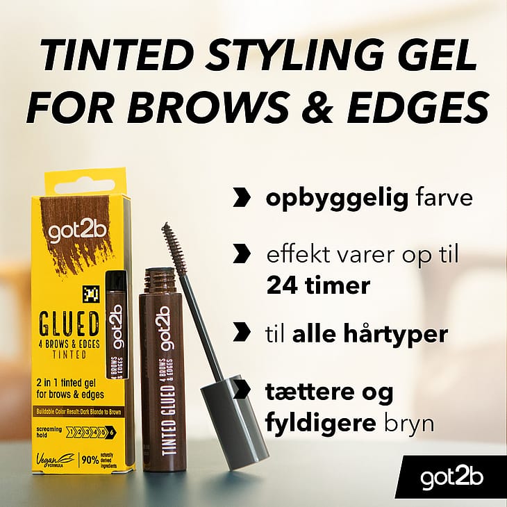 Få dit wow-øjeblik! got2b Glued 4 Brows and Edges præsenterer en 2-i-1-farvet gel, som både styler og farver brynene i ét trin og gør dem tættere og fyldigere med faste kanter. Den dermatologisk testede farvede gel er parfumefri, giver en mørkeblond til brun farve og holder bryn og kanter i form hele dagen.