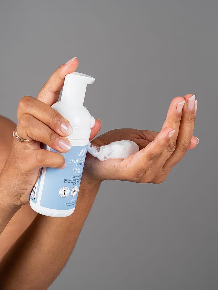 - Påfør et jævnt lag ShaveSafe Shaving Foam på huden.
