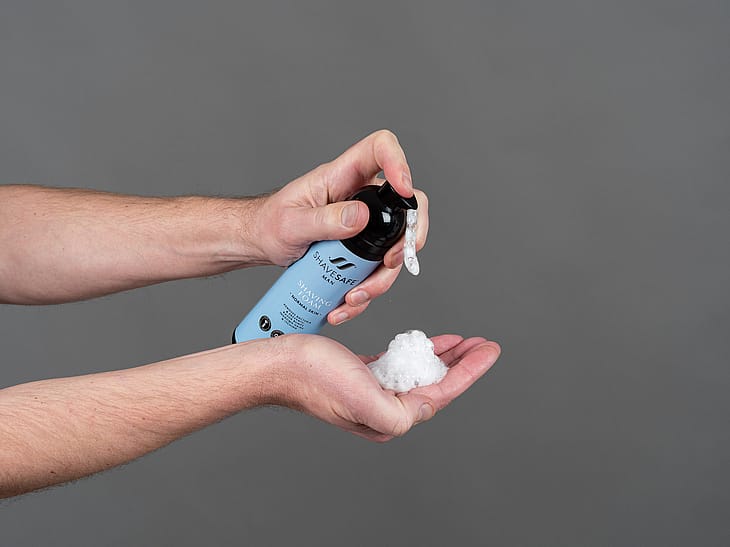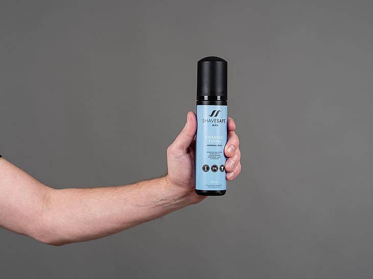 - Påfør et jævnt lag ShaveSafe Shaving Foam.