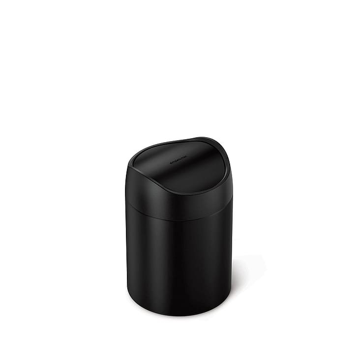 Denne affaldsspand er designet i et minimalistisk, funktionelt look, hvor den matte sorte overflade giver et sofistikeret udtryk. Den er lille og diskret, men rummelig nok til at klare de små ting i hverdagen: vatrondeller, makeup-servietter, vatpinde eller andet, der ellers kan rode.