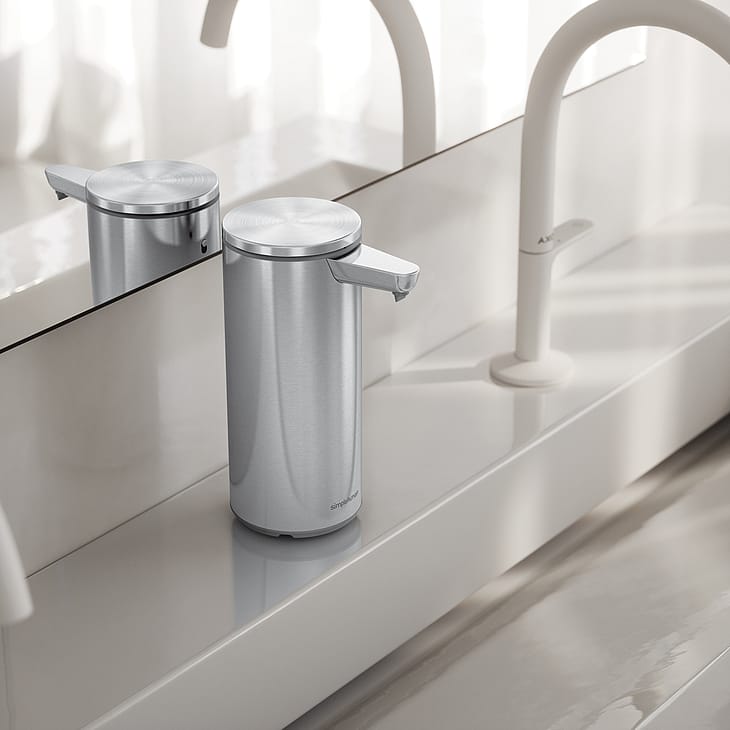 Stilrent design møder avanceret funktionalitet med simplehuman automatisk sæbedispenser i børstet stål. Denne genopladelige dispenser med sensor er skabt til moderne hjem, hvor hygiejne og æstetik er lige vigtige.
